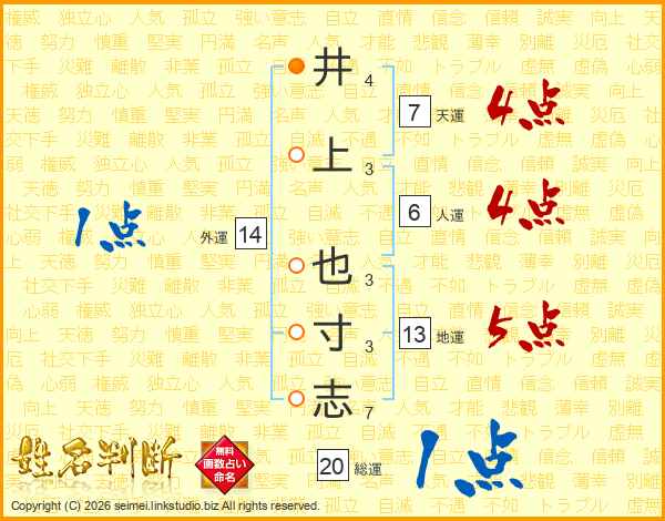 井上也寸志さんの天運は7画の4点!