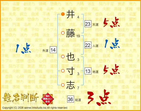 井藤也寸志さんの天運は23画の5点!