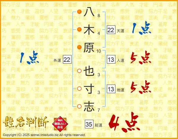 八(8画)木(4画)原(10画) 也(3画)寸(3画)志(7画)