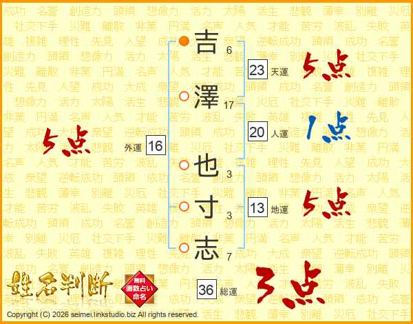 吉澤也寸志さんの天運は23画の5点!