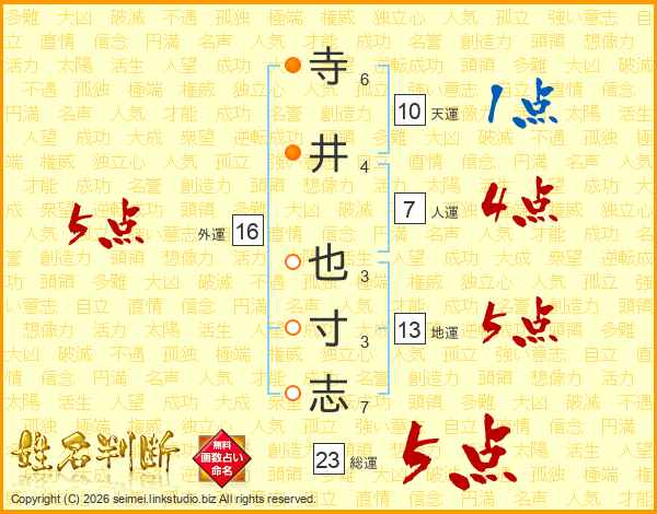 寺井也寸志さんの総運は23画の5点!