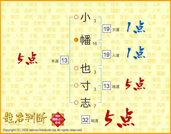 小幡也寸志さんの地運は13画の5点!