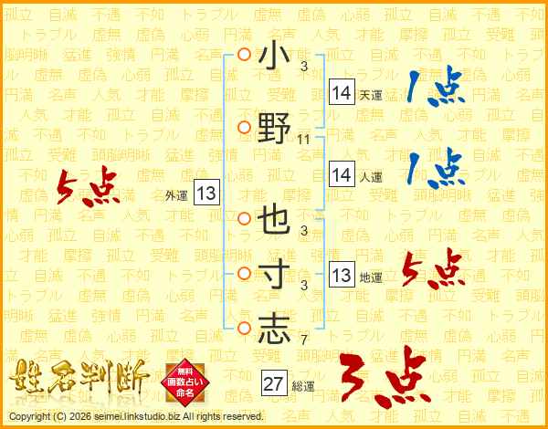 小野也寸志さんの総運は27画の3点!