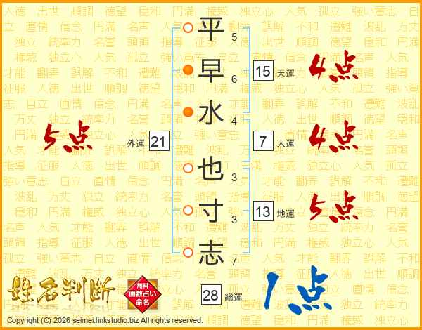 平早水也寸志さんの総運は28画の1点!