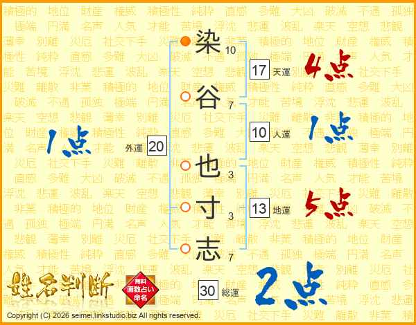 染(10画)谷(7画) 也(3画)寸(3画)志(7画)