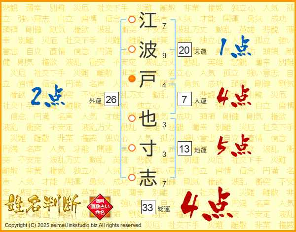 江波戸也寸志さんの総運は33画の4点!