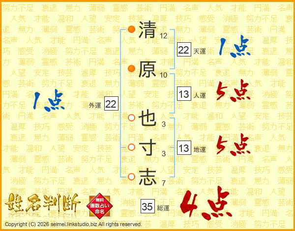清原也寸志さんの総運は35画の4点!