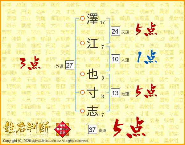 澤江也寸志さんの総運は37画の5点!