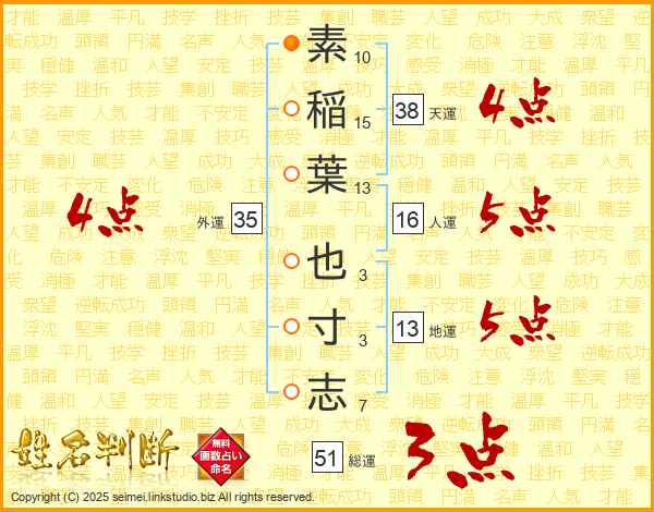素稲葉也寸志さんの総運は51画の3点!