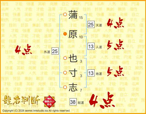 蒲原也寸志さんの総運は38画の4点!