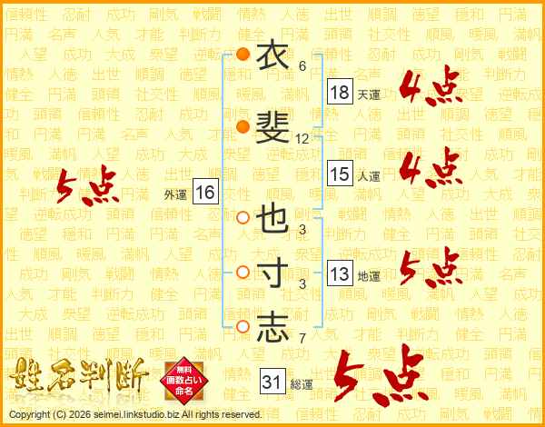衣斐也寸志さんの総運は31画の5点!