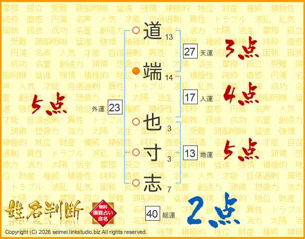 道端也寸志さんの総運は40画の2点!