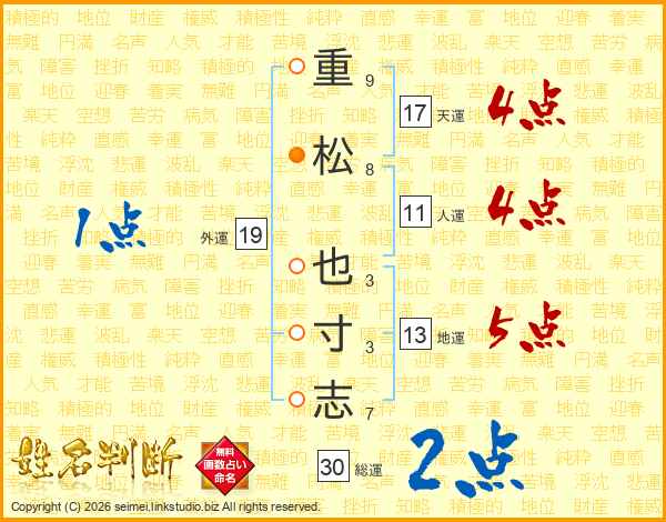 重松也寸志さんの人運は11画の4点!
