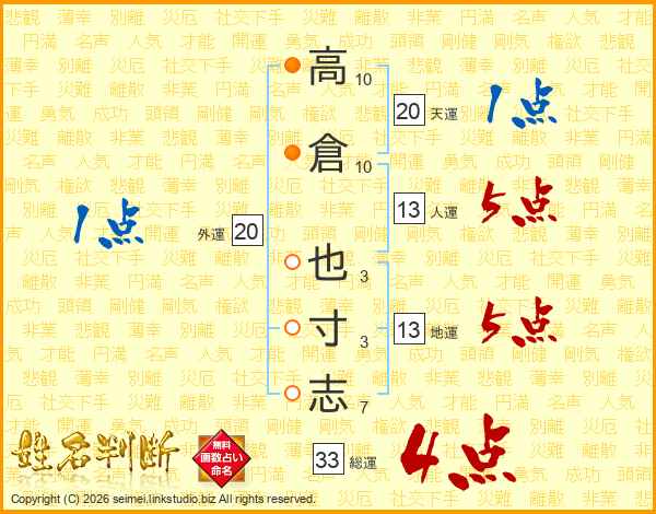 高倉也寸志さんの総運は33画の4点!