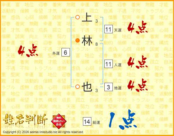 上林也さんの天運は11画の4点!