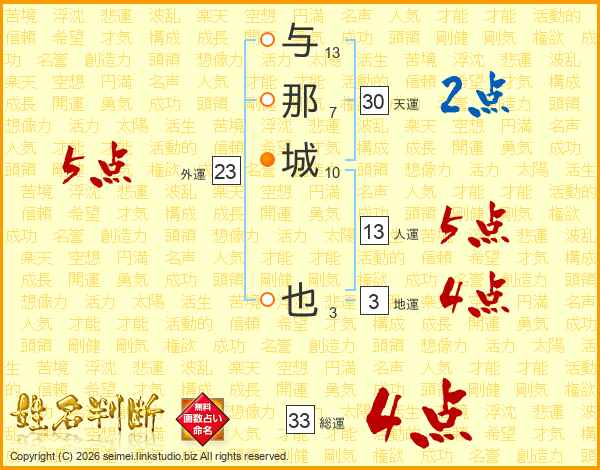 与那城也さんの総運は33画の4点!
