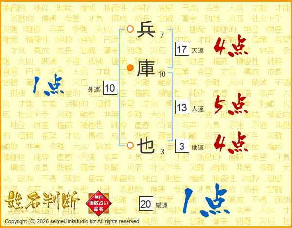 兵庫也さんの天運は17画の4点!