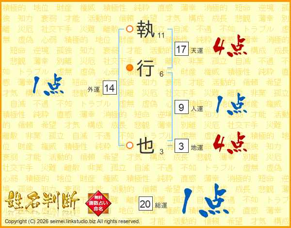 執行也さんの天運は17画の4点!
