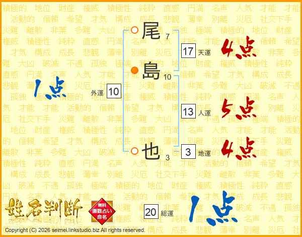 尾島也さんの天運は17画の4点!