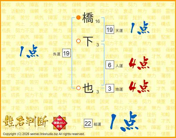 橋下也さんの総運は22画の1点!