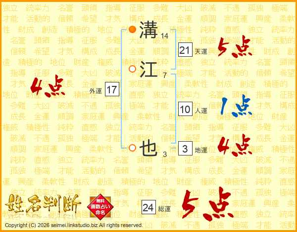 溝江也さんの総運は24画の5点!