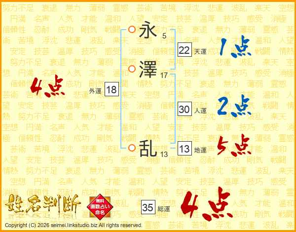 永澤乱さんの総運は35画の4点