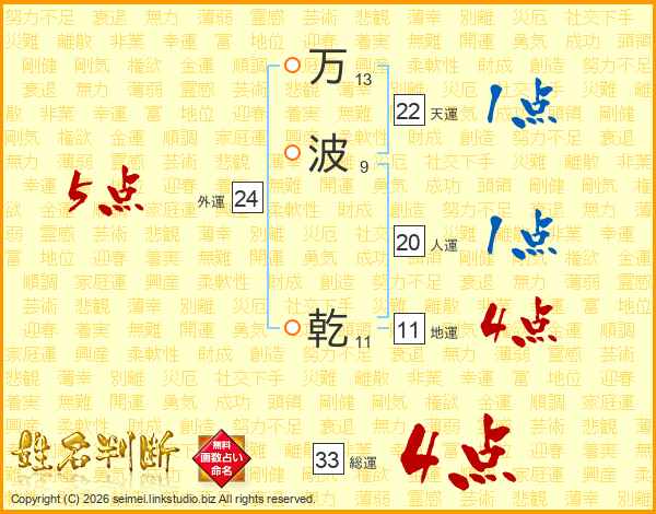 万波乾さんの総運は33画の4点!