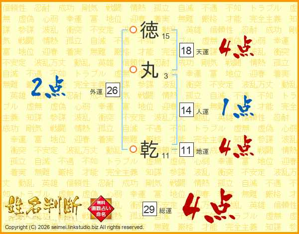 徳丸乾さんの総運は29画の4点!