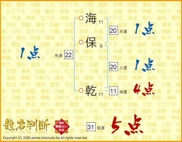 海保乾さんの総運は31画の5点!