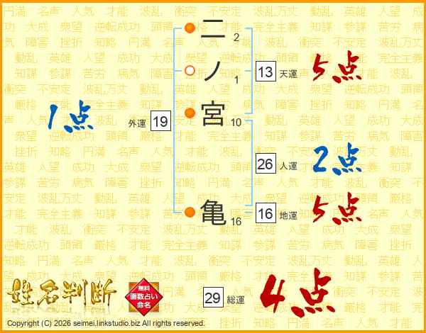 二ノ宮亀さんの総運は29画の4点!