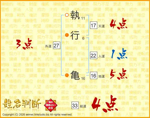 執行亀さんの総運は33画の4点!