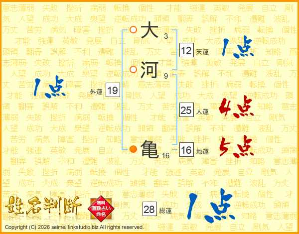 大河亀さんの総運は28画の1点!