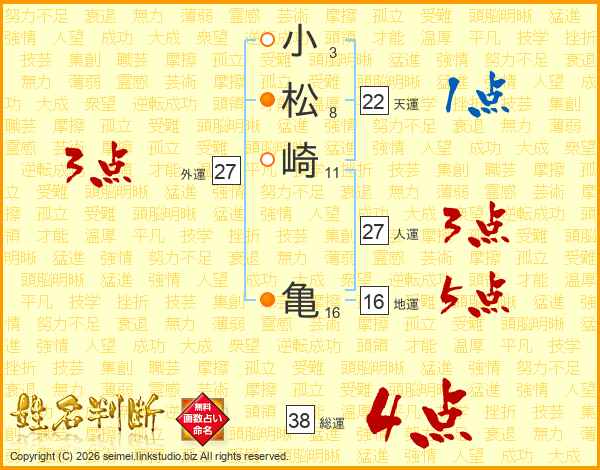 小松崎亀さんの総運は38画の4点!