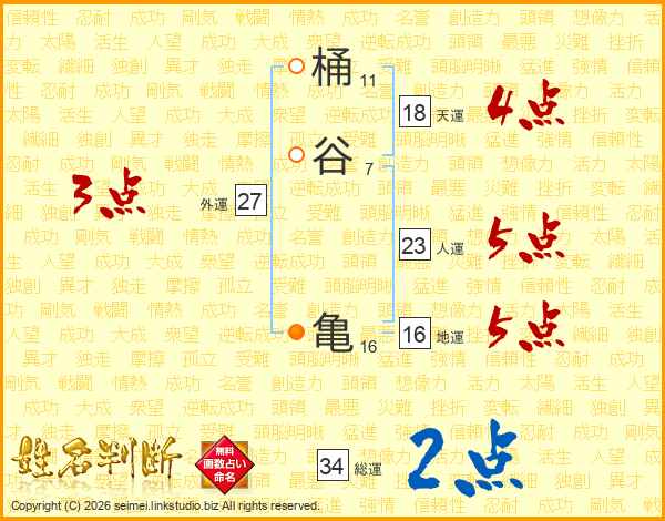 桶谷亀さんの総運は34画の2点!