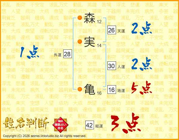 森実亀さんの総運は42画の3点!