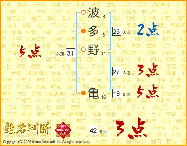 波多野亀さんの天運は26画の2点!