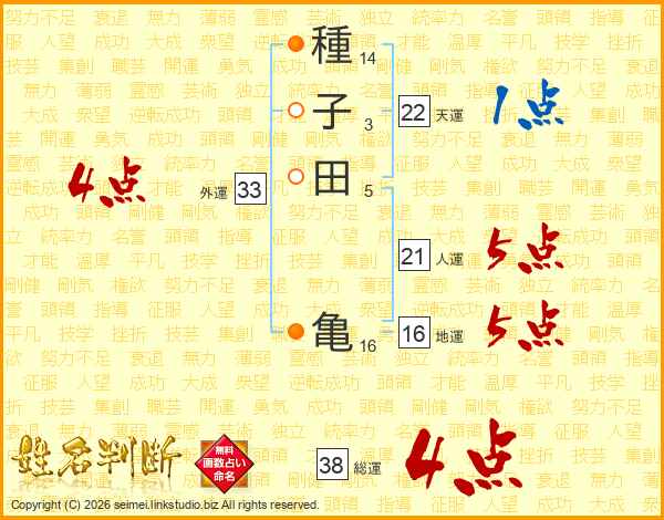 種子田亀さんの総運は38画の4点!