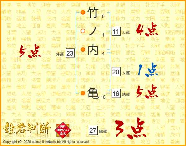 竹ノ内亀さんの天運は11画の4点!