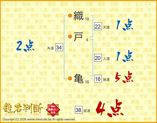 織戸亀さんの総運は38画の4点!