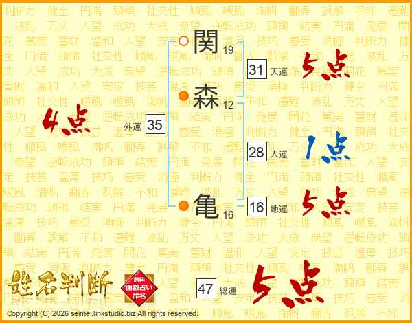 関森亀さんの総運は47画の5点!