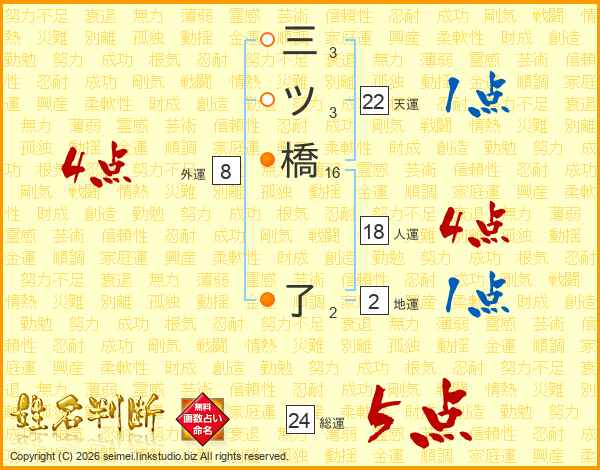 三ツ橋了さんの総運は24画の5点!