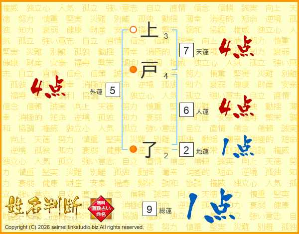 上戸了さんの総運は9画の1点!