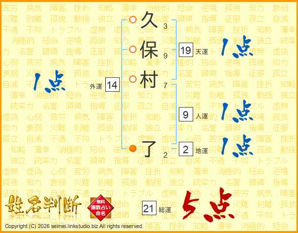久保村了さんの総運は21画の5点!