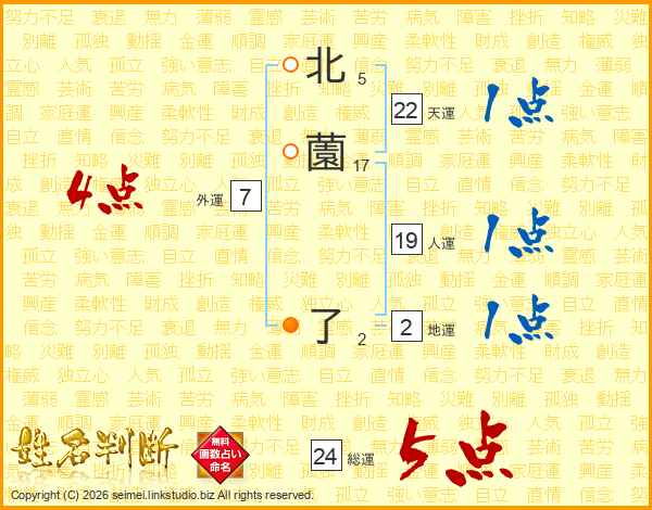 北薗了さんの人運は19画の1点!