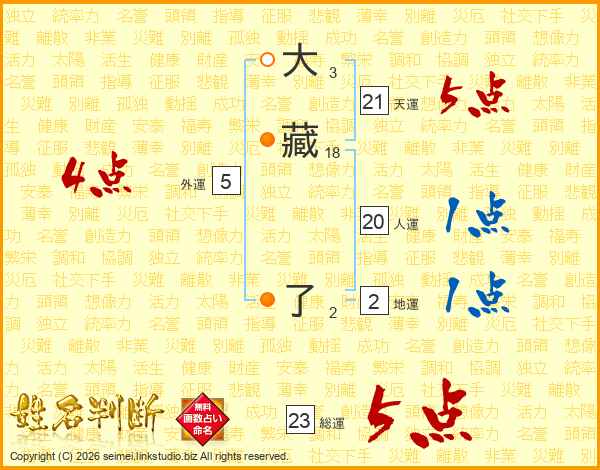 大藏了さんの天運は21画の5点!