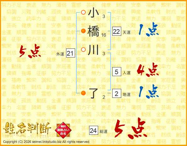 小橋川了さんの総運は24画の5点!