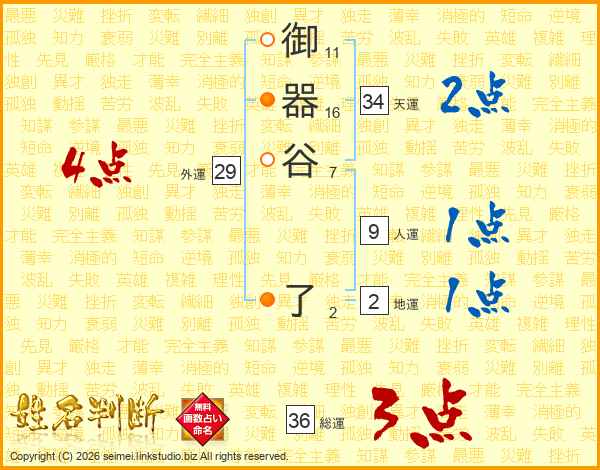 御器谷了さんの天運は34画の2点!