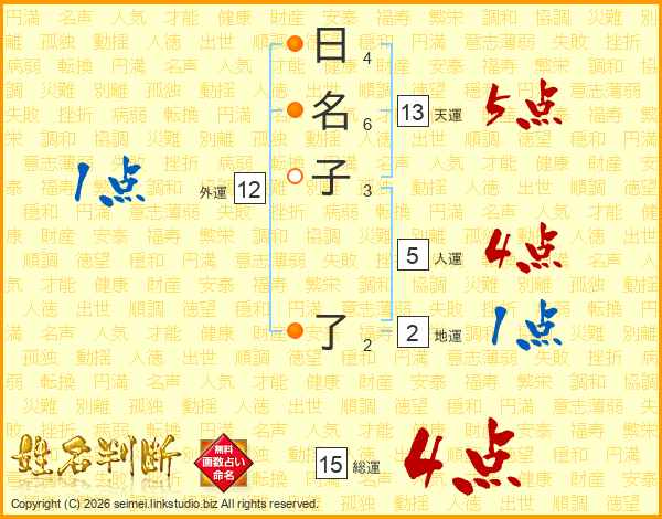 日名子了さんの総運は15画の4点!
