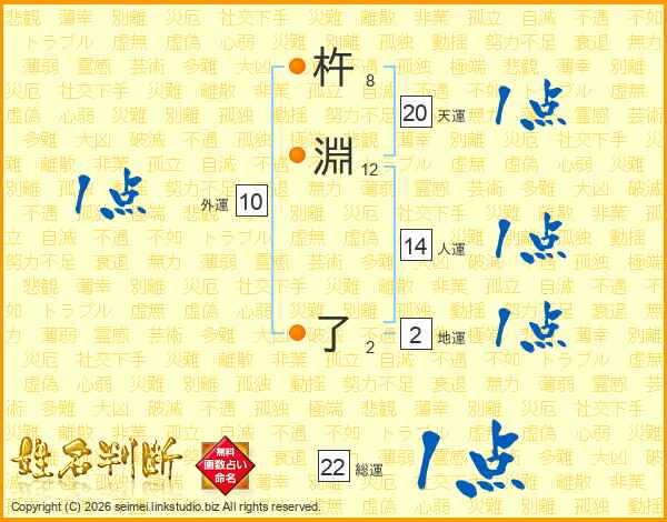 杵淵了さんの人運は14画の1点!