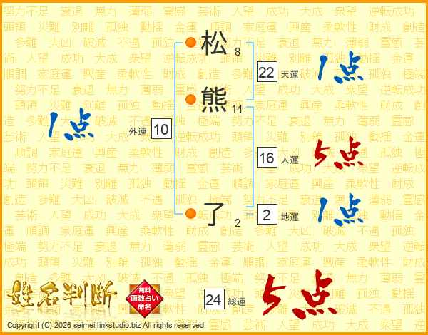 松熊了さんの総運は24画の5点!